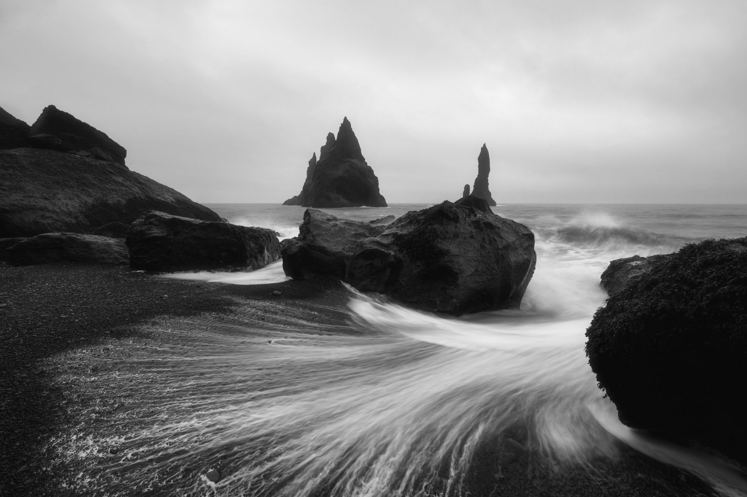 Down on the black beach, I taste the air like an animal—face lifted, mouth slightly open, nostrils expanding. The ocean in this spot has no scent. Not of salt nor seaweed. Is there a scent to the cold, to snow? I try to find it in the air, to think of it. I have been here in the summer when the hills around me glow emerald green, and the air drips with the fragrance of grass, and dirt, and sulfur, and flowers. When you can eat and breathe sunshine.