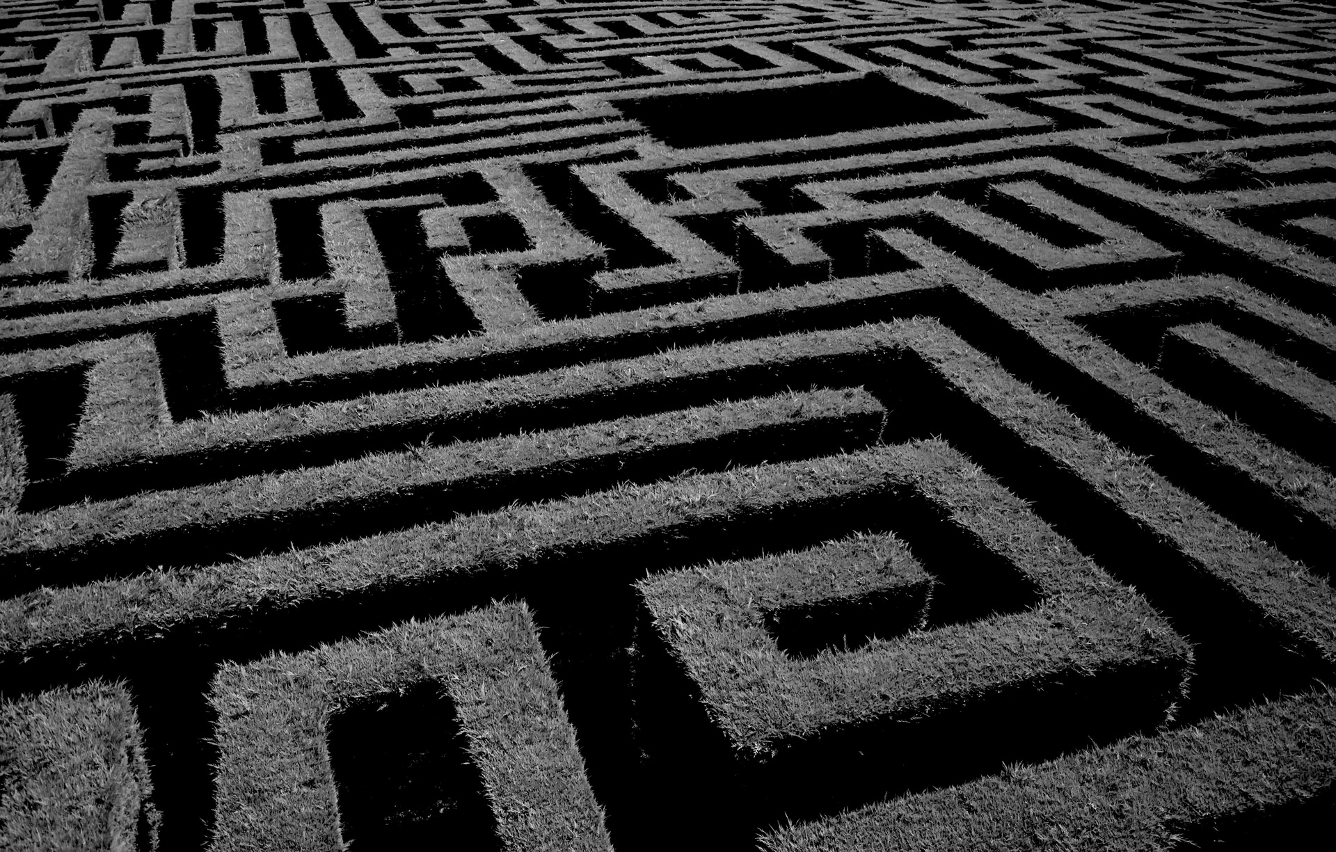 It had rained during the night and the freshly dug earth smelled of rot and leaves and mushrooms. A grid of taut green string stretched out before me over the remains of the grass and as I looked, it seemed to levitate, rising and rolling into a slowly spinning maze. Of course, that’s what it was—a maze: lines joining and dividing, dead ends, reversals.