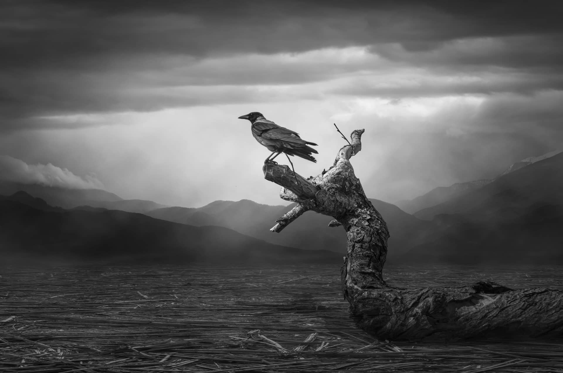 Nine months passed from that night of the crow-god’s visit. The stomach of my mother grew. She pined for my father, at the crying of tears of anger each night when she thought me asleep. She whispered his name into the dark, animal-flesh warmth of the house. When the baby was born, I held him close and in wonderment ran my fingers through the soft down of his feathers. His tiny hands curled around mine, perfect skin peeking through the vanes, the crow-god’s son. My mother wept exhausted tears.