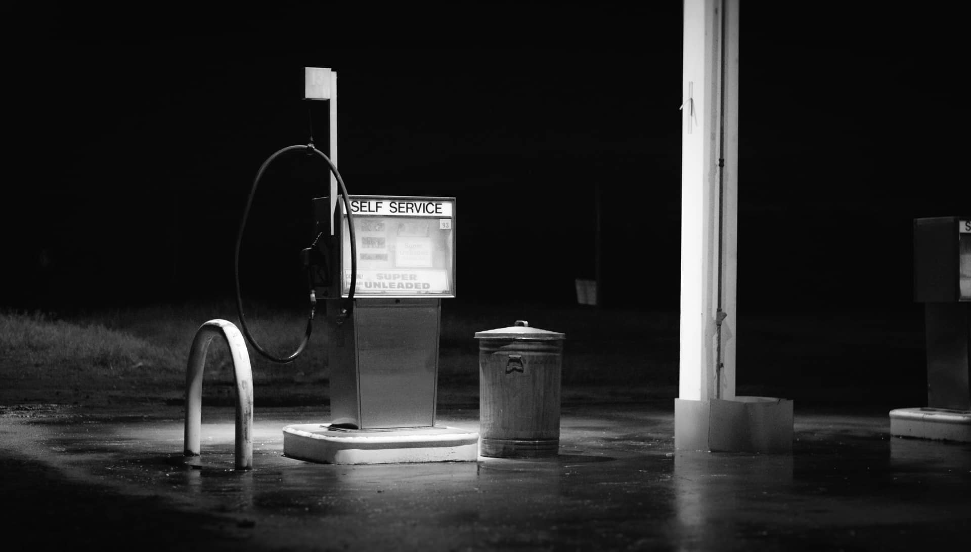 The lights on the pumps outside began going out. First, number six, then five, then four, it skipped over three, then two, and one also went black. I stood there squinting into the gloom. The single number three pump glowing in the vast emptiness of the night. Me inside, like a fish in a glowing fish tank in a dark, dark room. The empty black looking in, and me unable to look out.